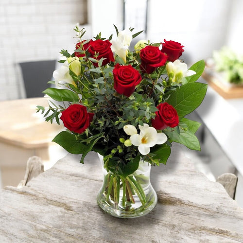 Aranjament floral in forma de inima - trandafirii rosii
