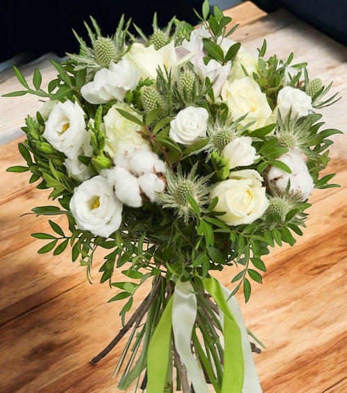 Aranjament prezidiu nunta lisianthus si floare miresei Aranjament prezidiu nunta lisianthus si floare miresei