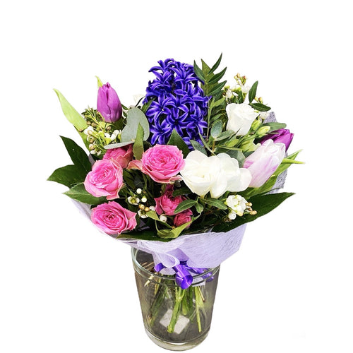 Round funeral wreath made of reflex mini roses, cyclamen roses and purple chrysanthemum, finished with eucalyptus or ruscus. The funeral wreath is made in the special support provided with a floral sponge, which helps to maintain the freshness of the flowers for a longer period. * The colors of the flowers can be changed according to the customer's preferences. Funeral arrangement with a diameter of 50-55 cm.